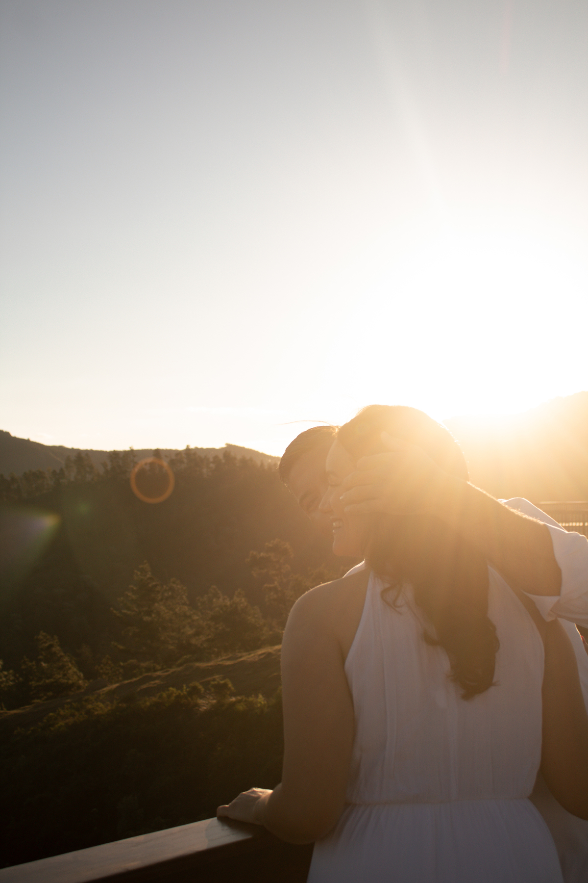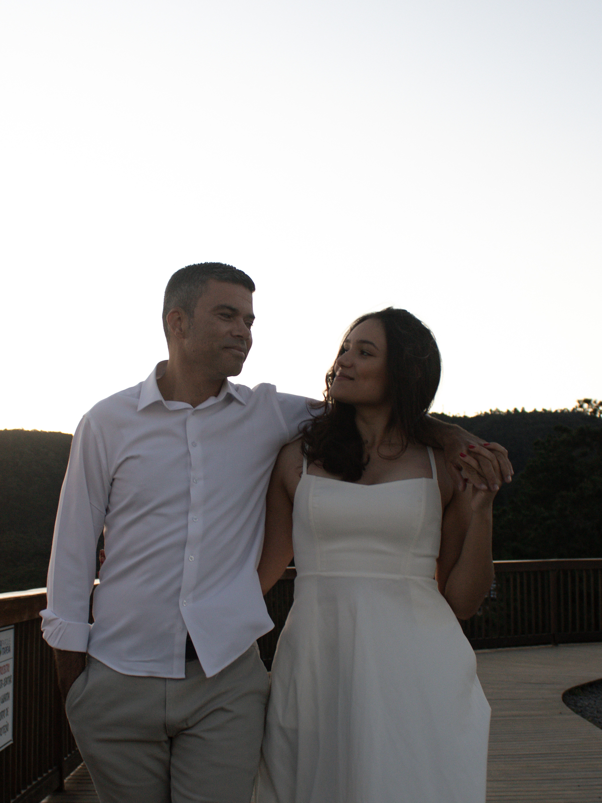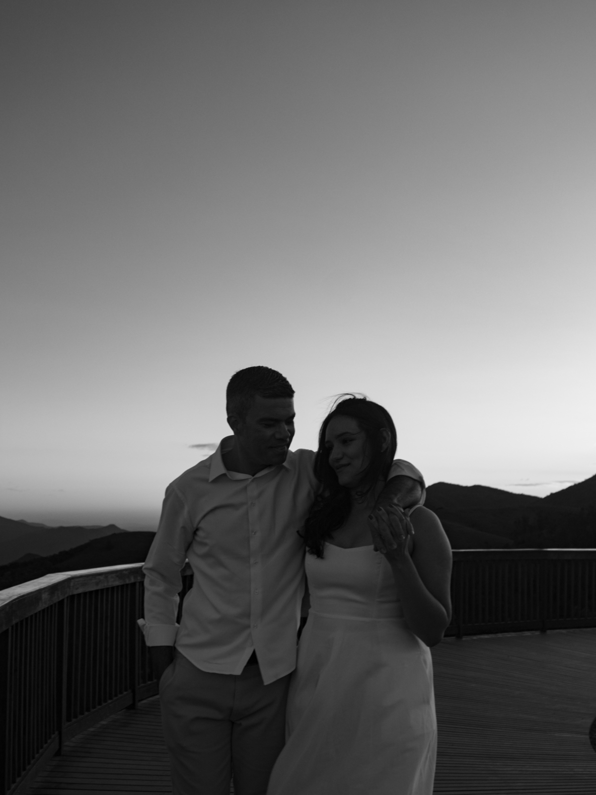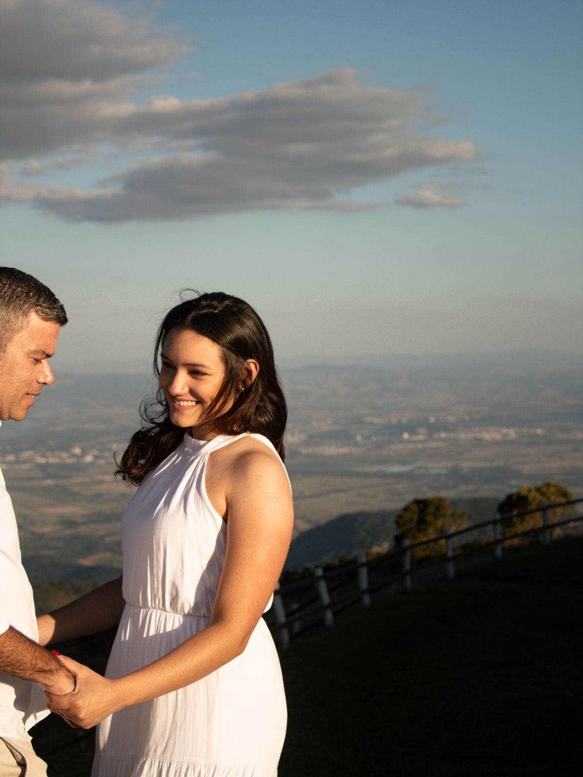 • Casal durante ensaio fotográfico no Pico do Itapeva ao pôr do sol com atmosfera leve.'